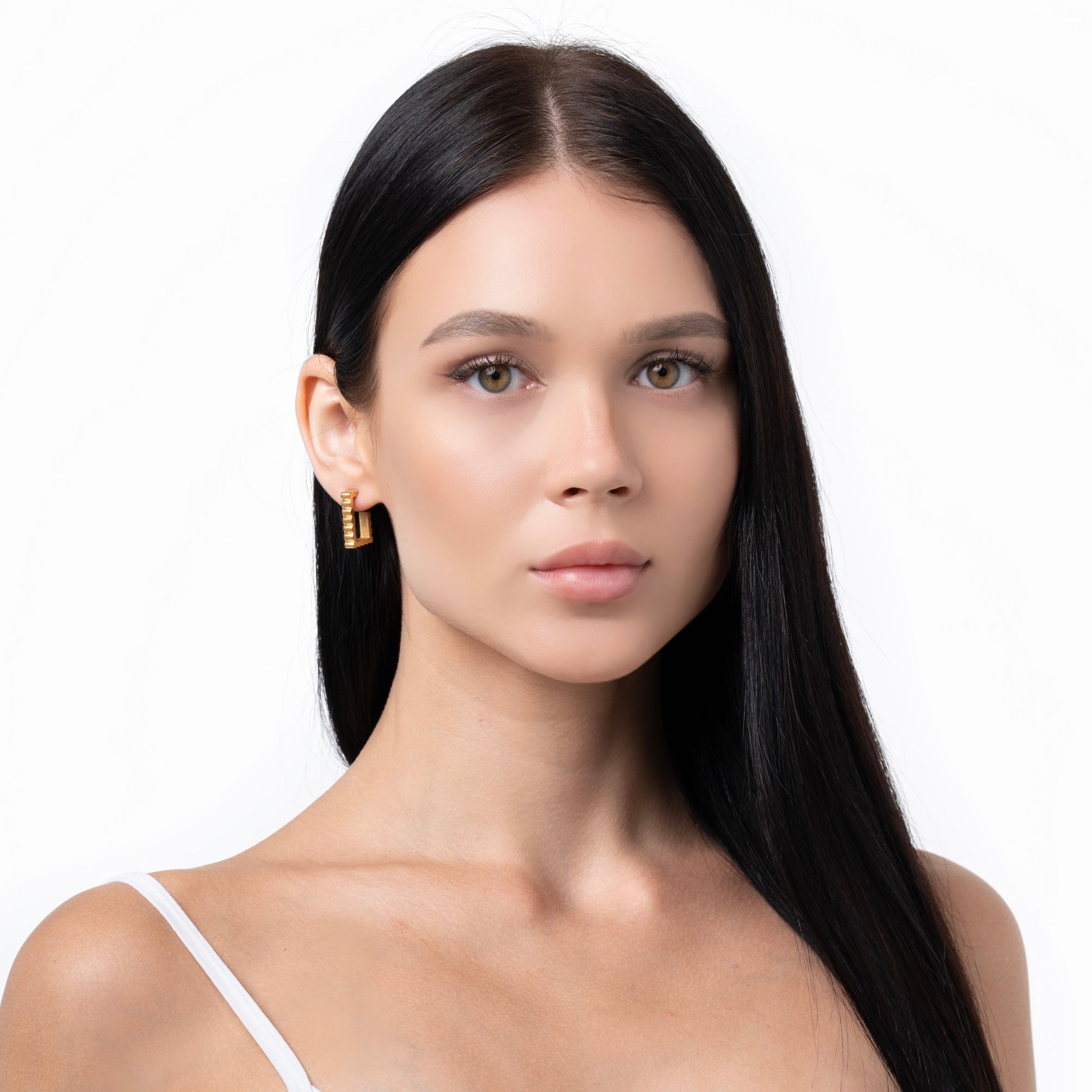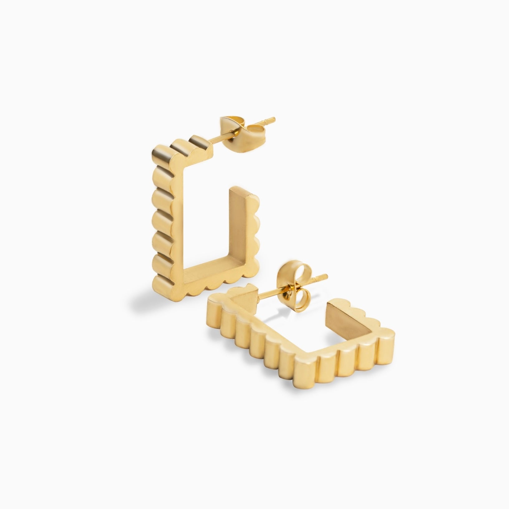The Bangkok Hoops earrings exude timeless elegance and modern chic. Their striking. linear pattern gives these square hoops a unique touch. A stylish accessory that adds a special sophistication to any look.