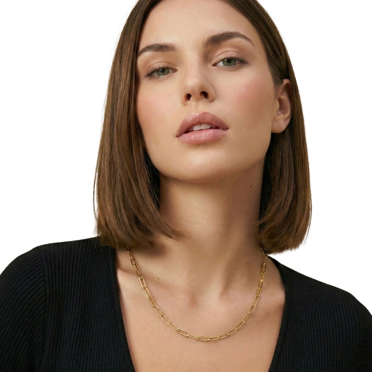 Mit ihrer markanten Paperclip-Form vereint die Lunara Paperclip Halskette schlichte Eleganz mit modernem Flair. Ein zeitloses Accessoire für jeden Tag.